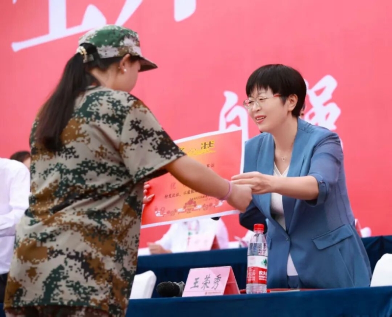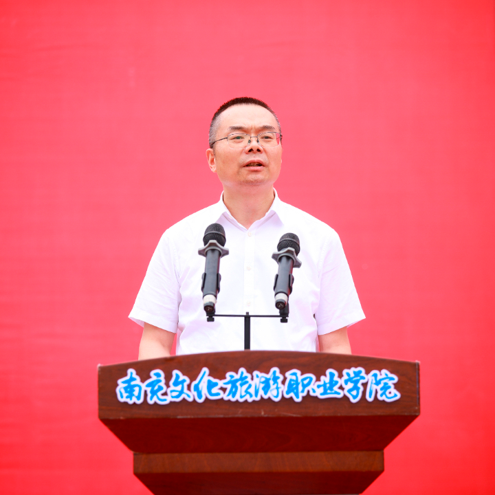 王荣秀代表学校党委、行政,向全体教官们致以崇高的敬意,向坚守一线、一路保障的老师们致以诚挚的感谢,向经受考验、收获成长的同学们,以及荣获奖励的个人和集体,表示热烈的祝贺!并向2025级新生讲授“开学第一课”,为新生锚定奋斗方向,点亮文旅逐梦征程。