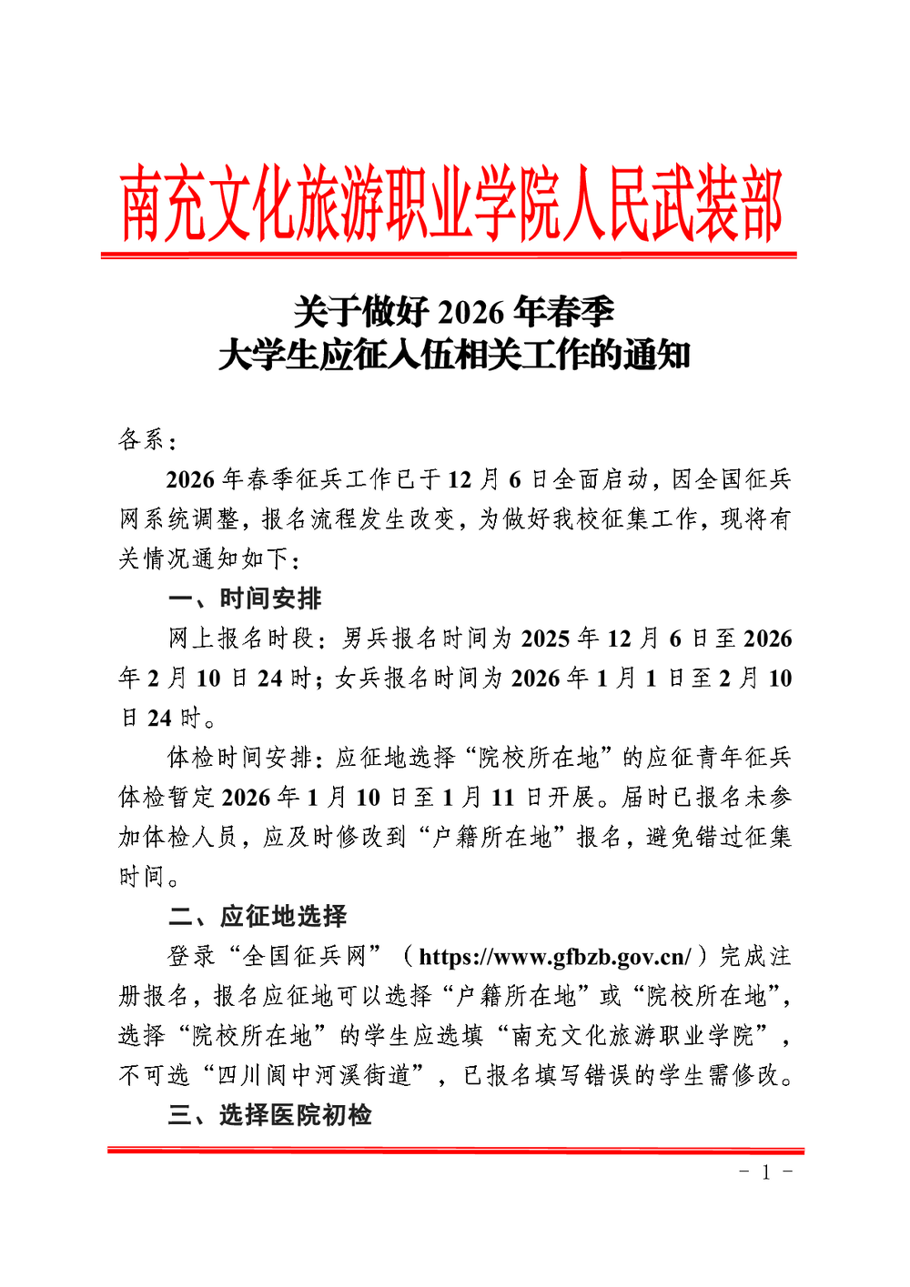 关于做好2026年春季大学生应征入伍相关工作的通知