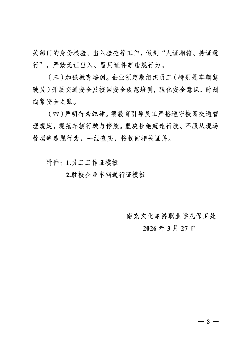 关于做好驻校企业员工及车辆安全管理的通知