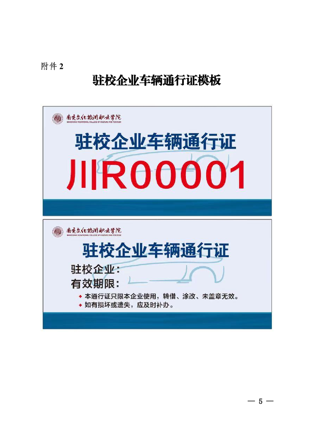 附件2:驻校企业车辆通行证模板.jpg