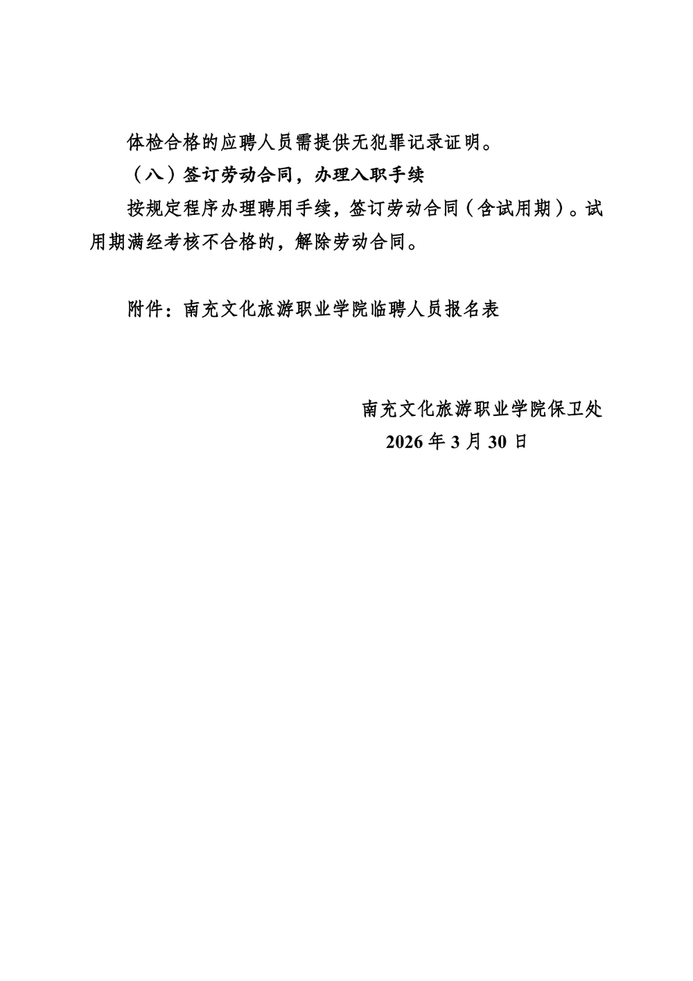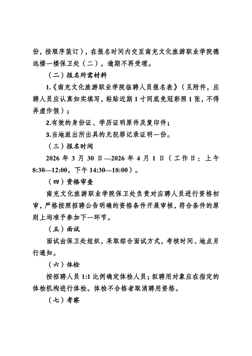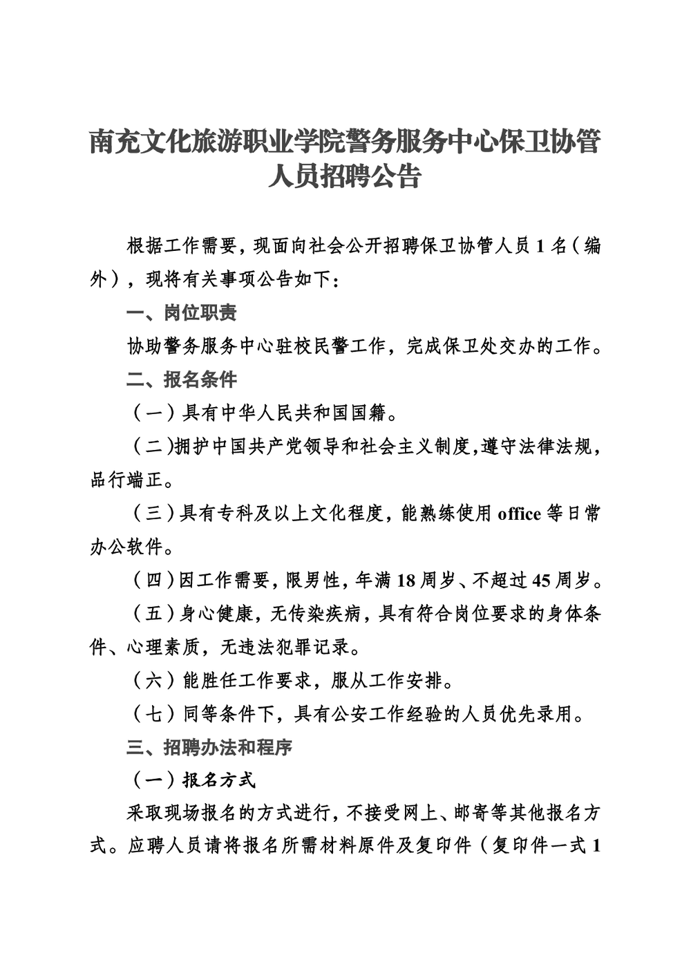南充文化旅游职业学院警务服务中心保卫协管人员招聘公告